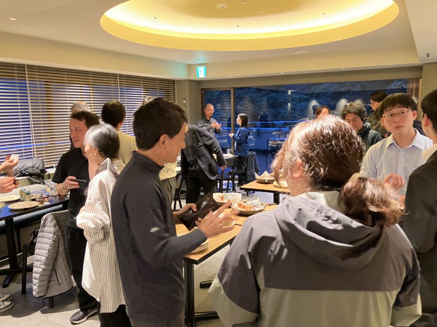 森のために汗を流したあとは、横浜自然観察の森からすぐの「上郷・森の家」に移動し、レストランkokkoにて懇親会を行いました。おしゃれな店内には本格的なピザ窯があり、焼き立てのピザと冷たい飲み物を楽しむことができました。同じ作業を行った仲間として、参加者同士和やかな交流が図られました。
